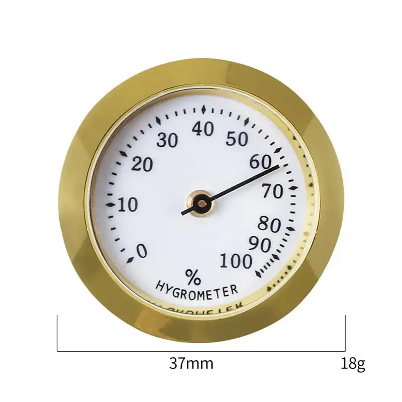 • Elegant Design: Tailored to complement luxury cigar humidors, this metal hygrometer features a sleek, refined silhouette with a polished metal finish that exudes sophistication. Its clear, easy-to-read dial with crisp markings allows for quick at-a-glance humidity checks, while the compact, streamlined build fits seamlessly into any humidor interior without disrupting the aesthetic of your cigar display.