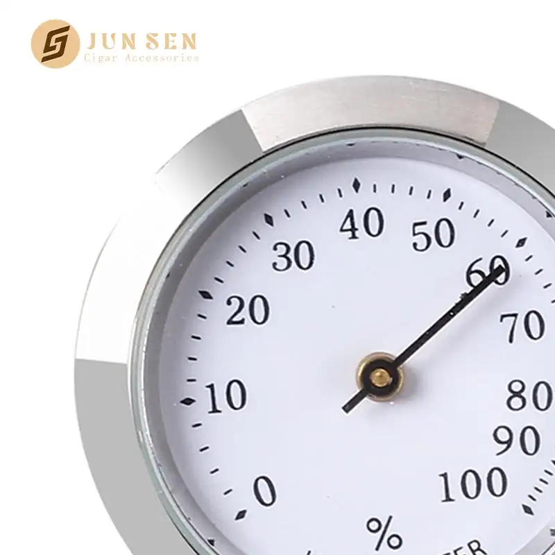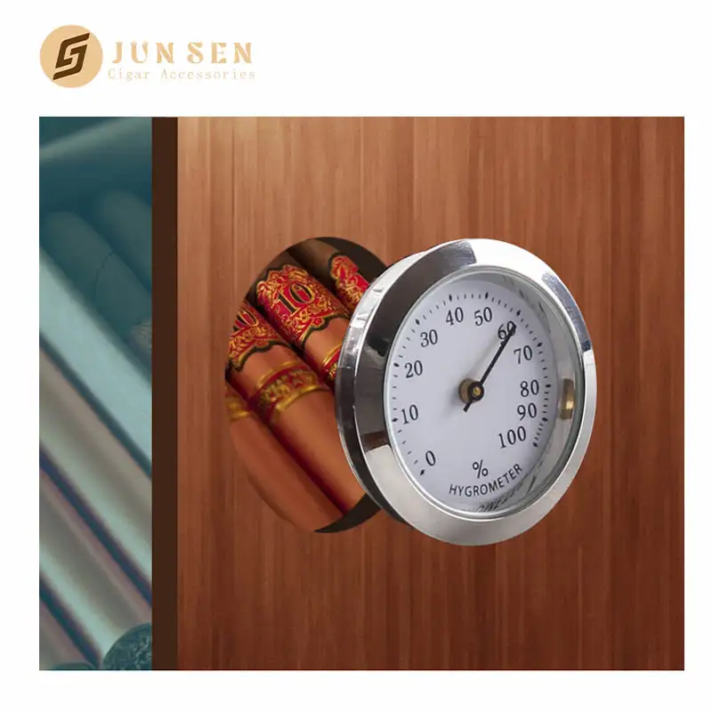This high-quality metal cigar hygrometer is a must-have accessory for serious cigar enthusiasts, delivering uncompromising accuracy to maintain the perfect humidity level in your premium humidor. Engineered specifically for cigar storage needs, it ensures your prized cigar collection stays fresh, flavorful, and well-preserved, eliminating the risk of dried-out or over-humidified cigars for a consistently exceptional smoking experience.