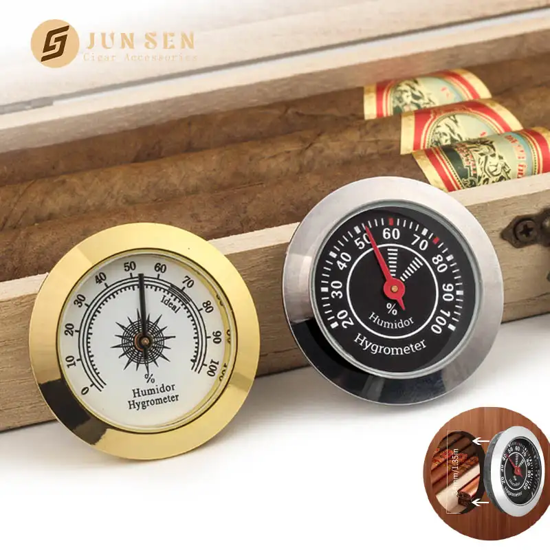 This 38mm Metal Hygrometer is a compact, high-precision humidity monitoring solution tailored for cigar humidors, wine cellars, cabinets, and other small enclosed spaces, delivering accurate readings to preserve your valuables in optimal conditions. Its miniaturized design ensures it fits seamlessly into tight areas without compromising on performance, making it an essential tool for enthusiasts and collectors alike.