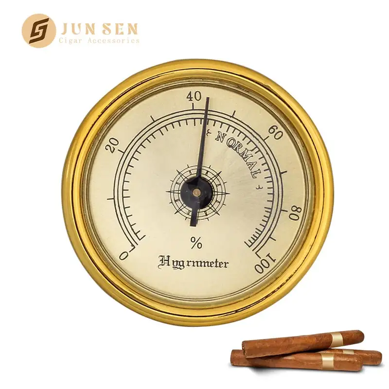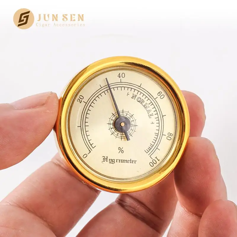 1. Model No.: CP-G201 2. Material: Stainless Steel and Plastic 3. Size: Dia. 44mm 4. Color : Gold/Customized 5. Style: Simple, Modern, Classics 6. Use: Smoking, Cigars 7. Feature:Stable Performance, Easy Reading & Installation 8. MOQ: 300pcs 9. Sample lead time: 3-7 days 10. Place of origin: Guangdong,China