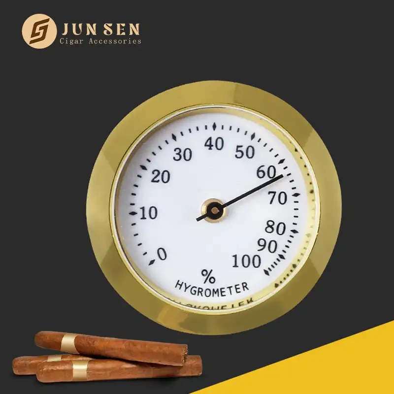 This high-quality metal cigar hygrometer is a must-have accessory for serious cigar enthusiasts, delivering uncompromising accuracy to maintain the perfect humidity level in your premium humidor. Engineered specifically for cigar storage needs, it ensures your prized cigar collection stays fresh, flavorful, and well-preserved, eliminating the risk of dried-out or over-humidified cigars for a consistently exceptional smoking experience.