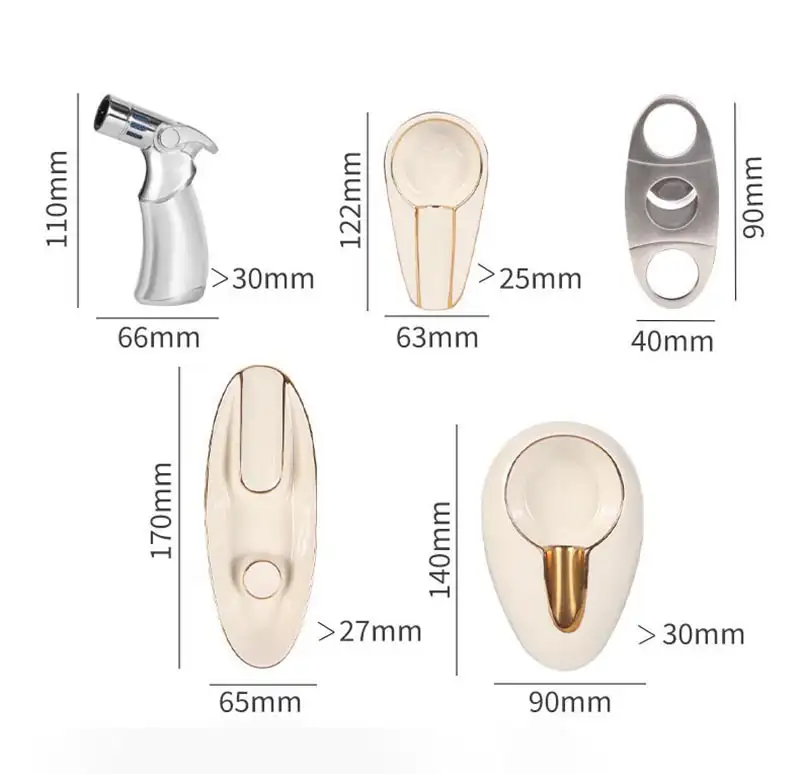 • Custom Cigar Tool Kits : Our cigar tool kits offer flexible combinations of essential items such as cigar cutters, scissors, punches, tube, lighters, and ashtrays to meet daily cigar needs at home, during travel, or for gifting. Different styles and functional configurations are available, making them ideal for premium cigar sets, business gifts, and personalized cigar gift solutions.