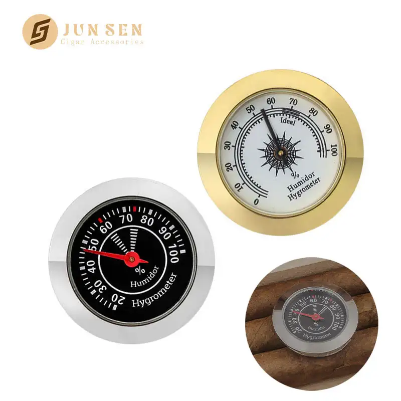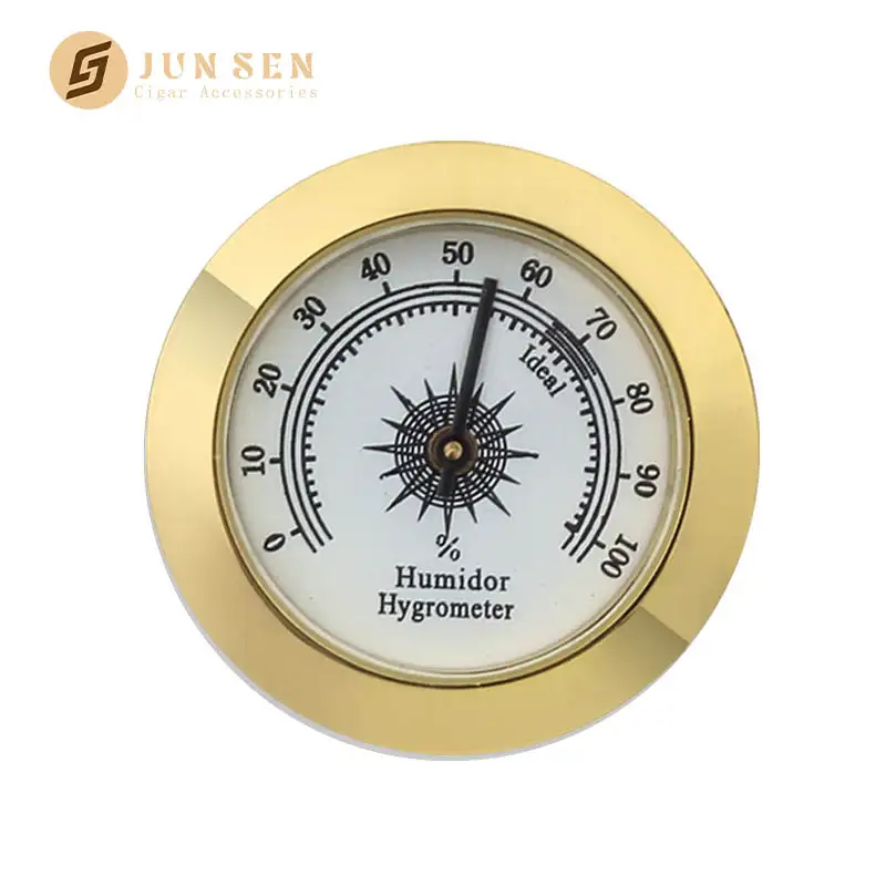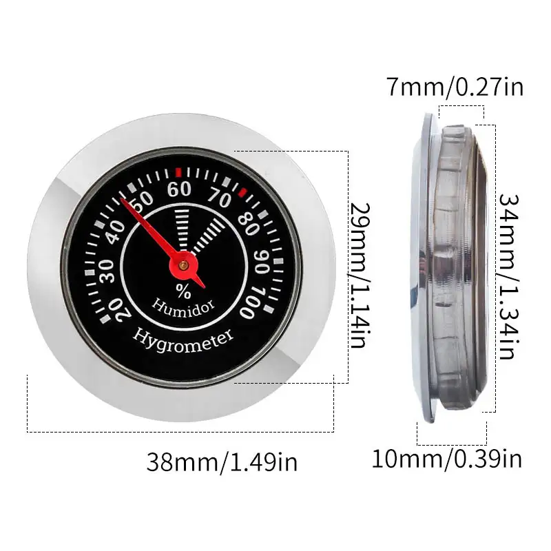 This 38mm Metal Hygrometer is a compact, high-precision humidity monitoring solution tailored for cigar humidors, wine cellars, cabinets, and other small enclosed spaces, delivering accurate readings to preserve your valuables in optimal conditions. Its miniaturized design ensures it fits seamlessly into tight areas without compromising on performance, making it an essential tool for enthusiasts and collectors alike.